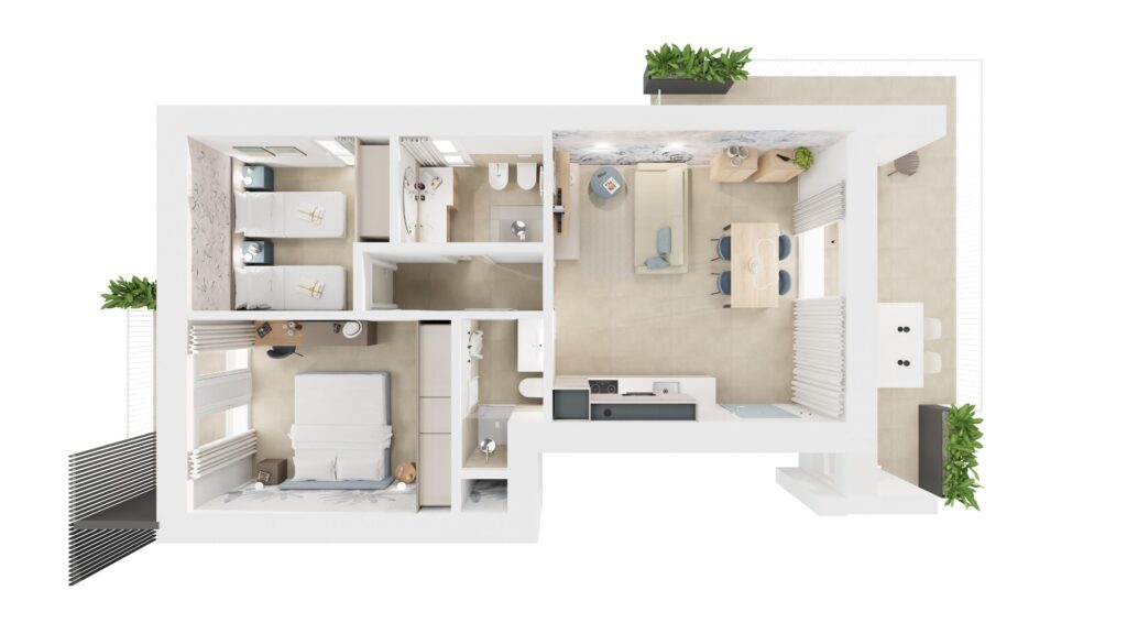 2 camere e 2 bagni